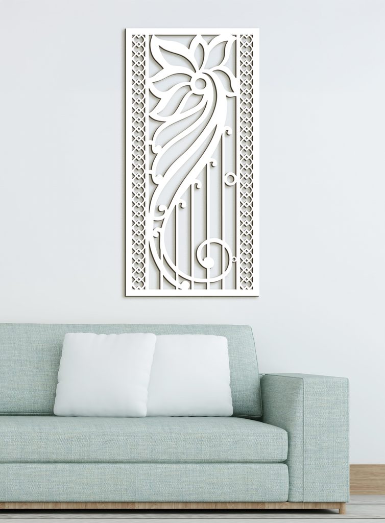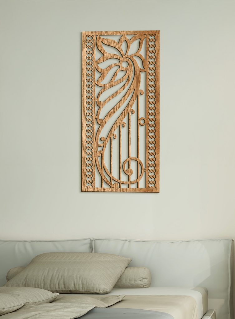 Tento krásný dřevěný obraz z HDF dřeva zobrazuje orientální květinový vzor zvaný MANDALA. Moderní design, z něhož se rozvětvují jemné linie květů, dodává celému dílu symetrii a eleganci.