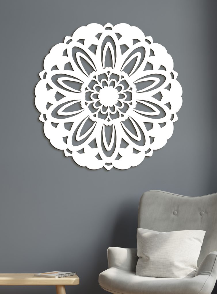 Design této mandaly je inspirován starobylým symbolem Květu života, který se objevuje v různých kulturách po celém světě. Tento symbol představuje základní principy vesmíru a života a zachycuje vzájemné působení různých aspektů existence. Květ života je často vnímán jako znázornění vzoru, který v přírodě vytváří harmonii a rovnováhu. Předpokládá se, že mandala nejen posiluje energii prostoru, ale také podporuje vnitřní klid a duchovní růst.