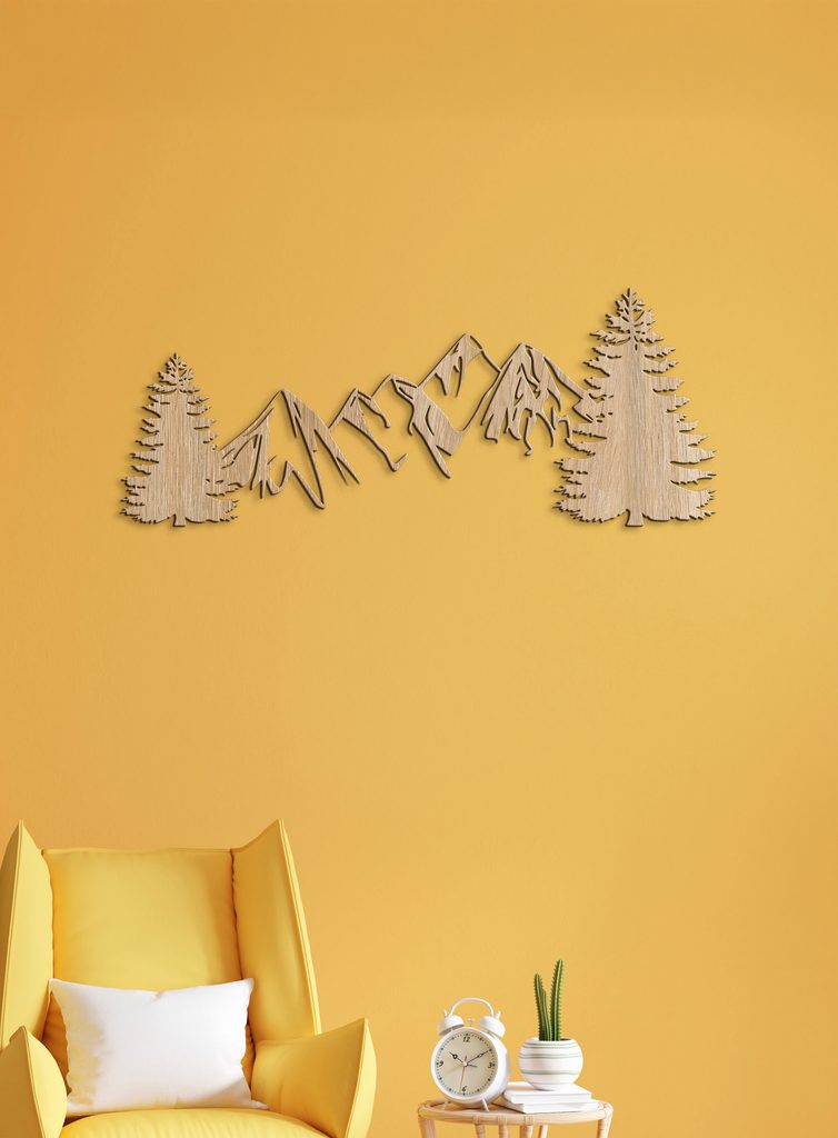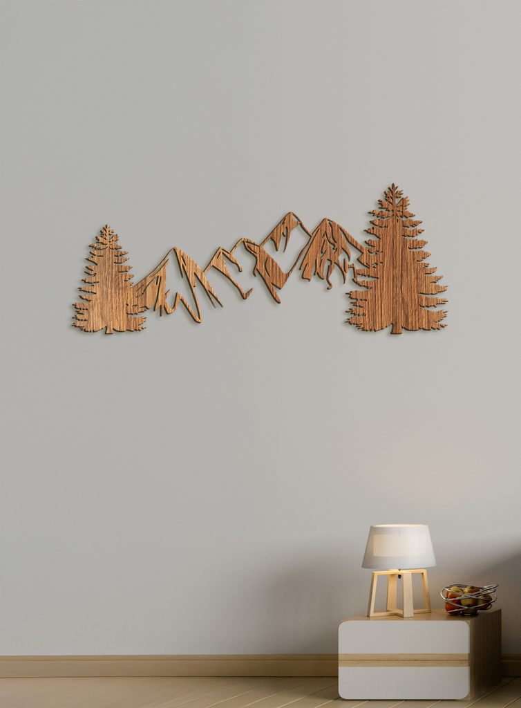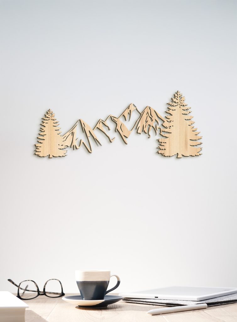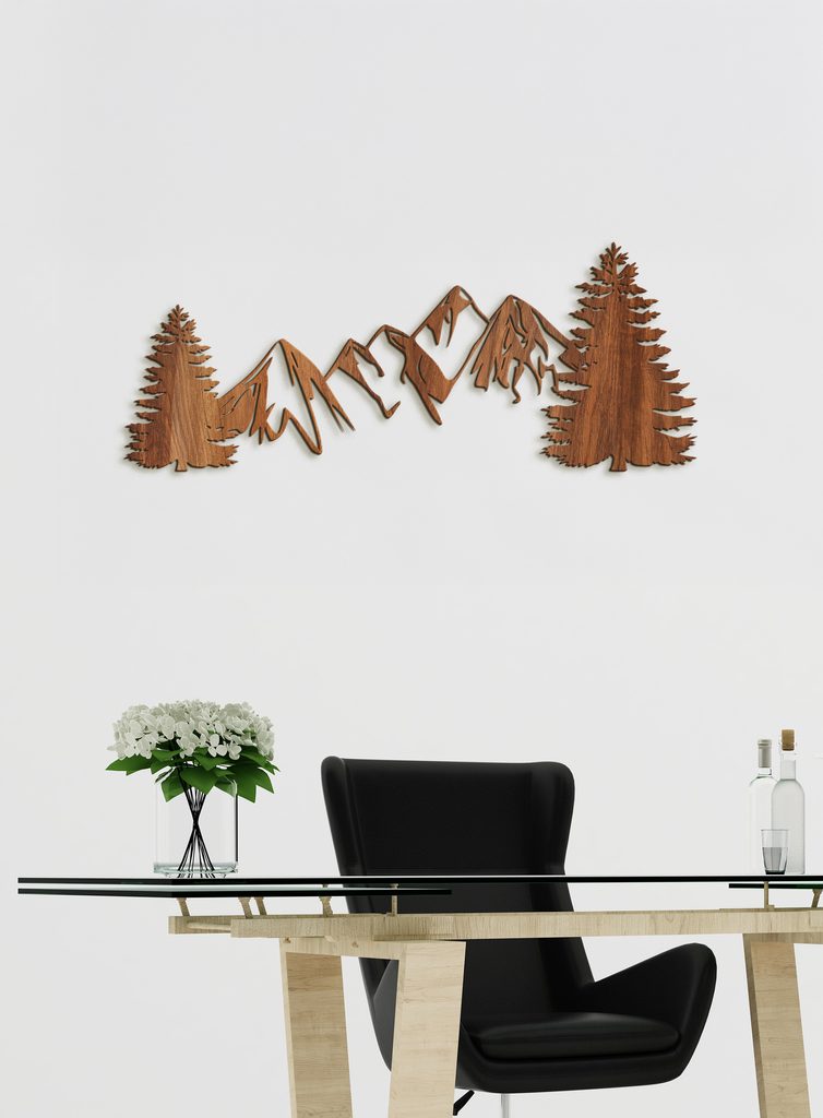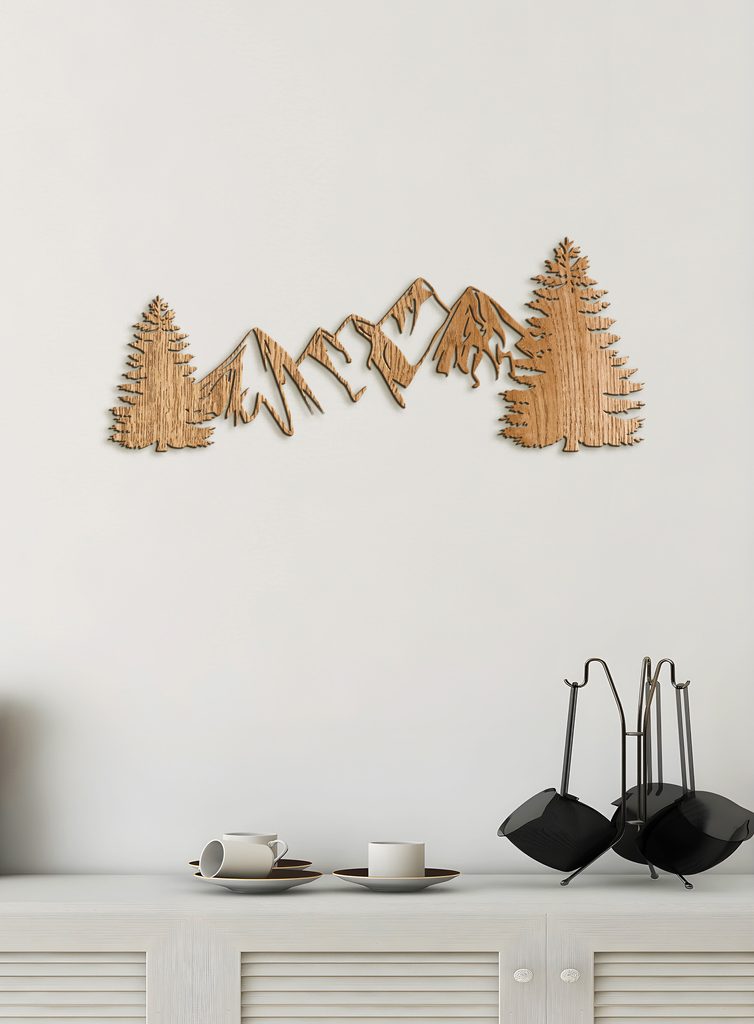 Vytvořte si doma atmosféru pohody a přírodní krásy s naší dřevěnou nástěnnou dekorací. Tento nádherný design představuje několik horských vrcholů a řeku tekoucí v popředí. Díky precizním detailům a přírodnímu motivu je tento kousek ideální pro milovníky přírody a rustikálního stylu.