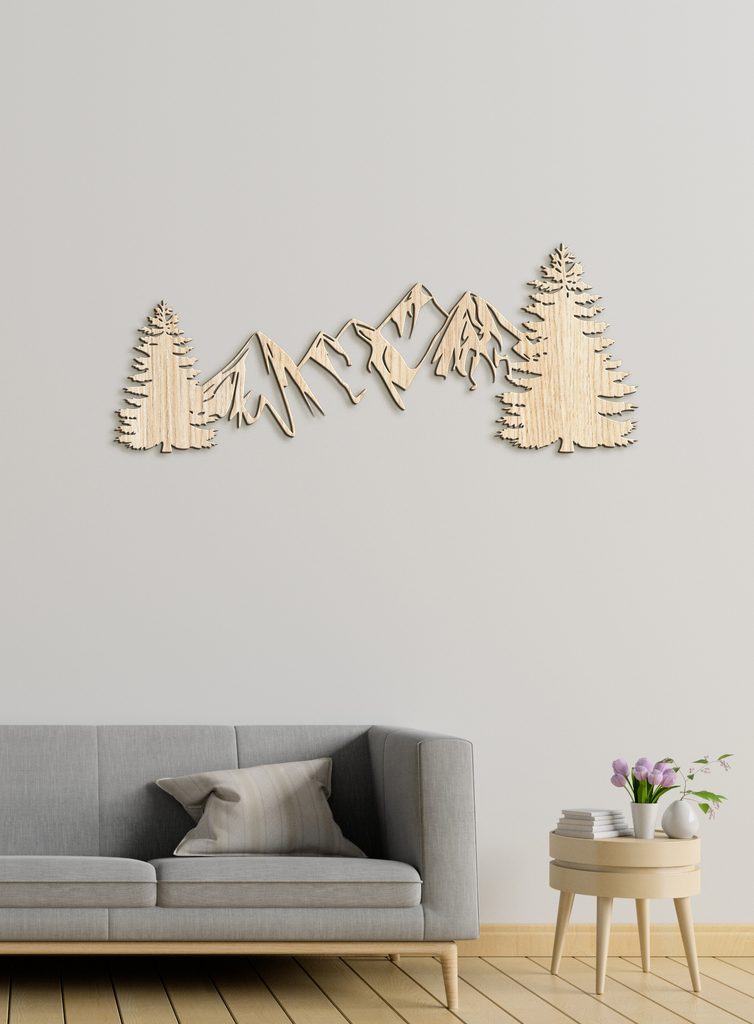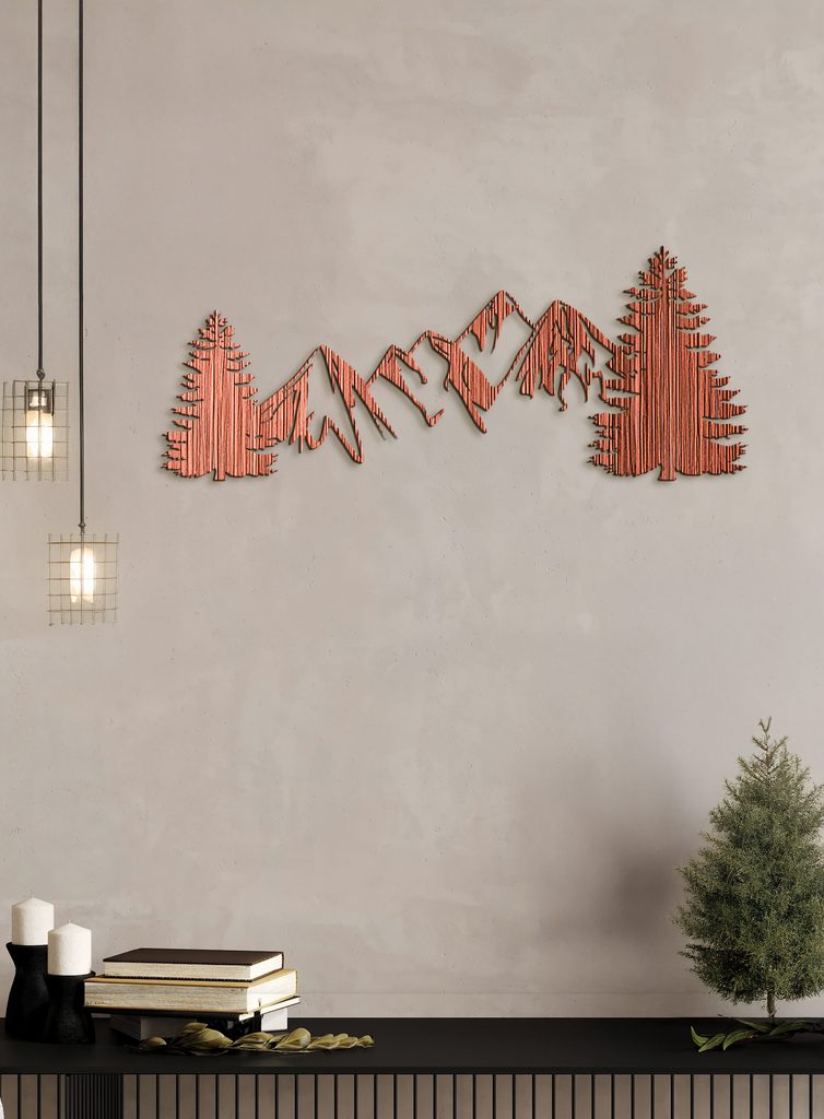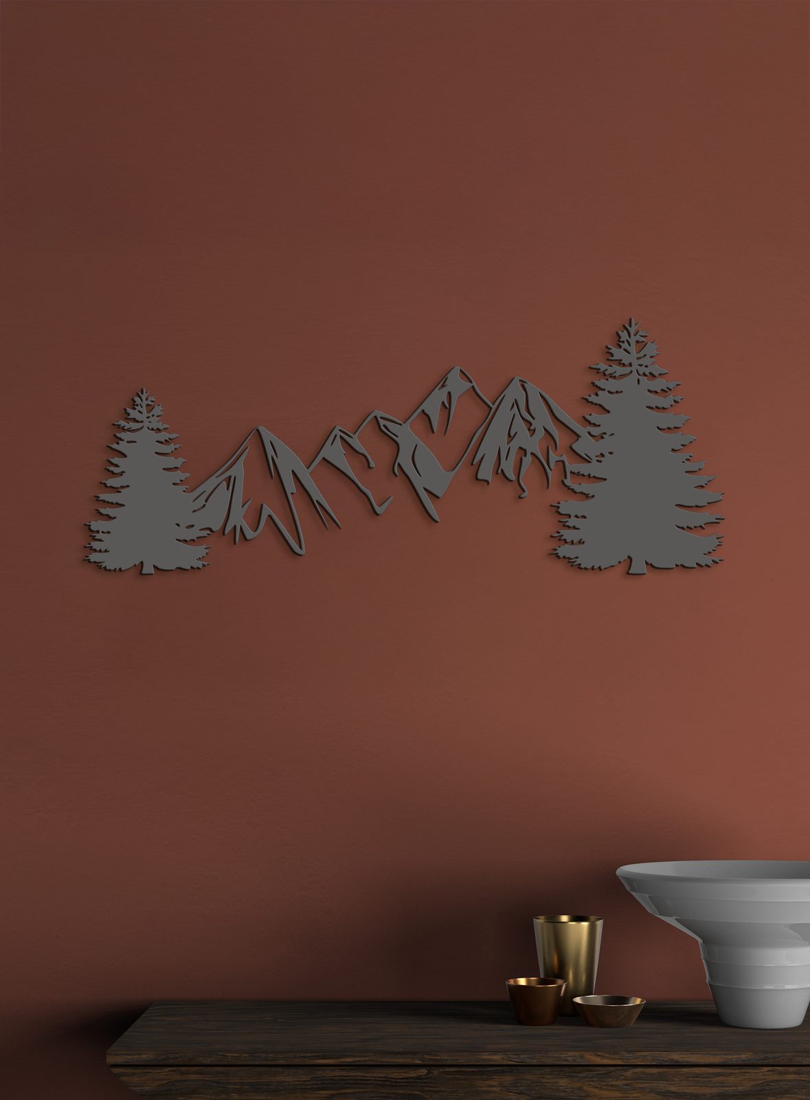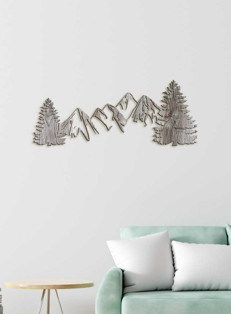 Vytvořte si doma atmosféru pohody a přírodní krásy s naší dřevěnou nástěnnou dekorací. Tento nádherný design představuje několik horských vrcholů a řeku tekoucí v popředí. Díky precizním detailům a přírodnímu motivu je tento kousek ideální pro milovníky přírody a rustikálního stylu.