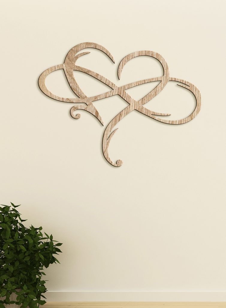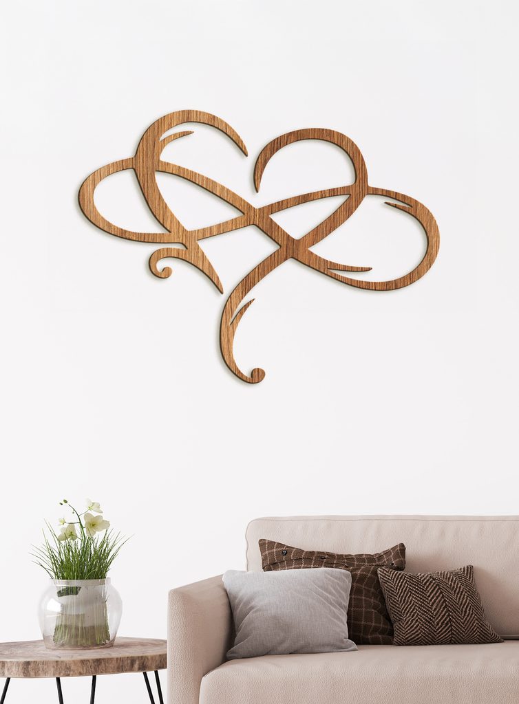 Představte si symbol nekonečna elegantně obepínající jemné srdce, jako by vám připomínal nekonečnou lásku a nekonečné pouto. Tento dřevěný obraz z HDF zobrazuje právě tento krásný motiv.