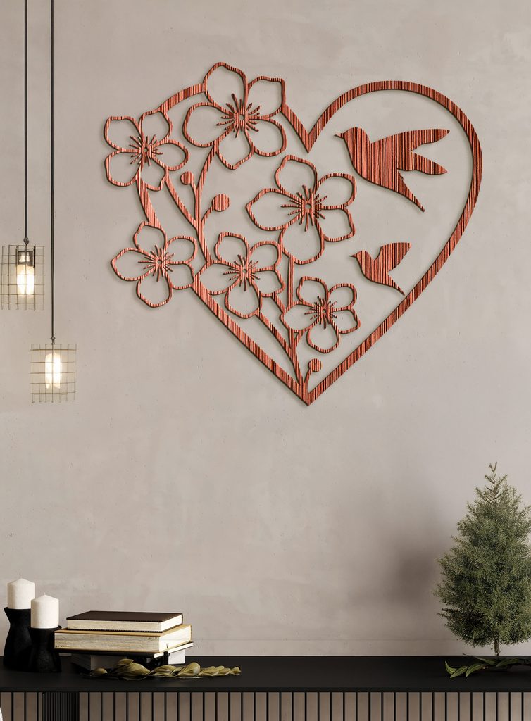 Náš dřevěný nástěnný obraz Srdce s květinami je dokonalým dekorativním prvkem pro váš domov, kancelář nebo jakýkoli jiný prostor, který vnese do vašeho interiéru nádech elegance. Doplňte svůj prostor tímto uměleckým dílem a nechte ho na své zdi zazářit.