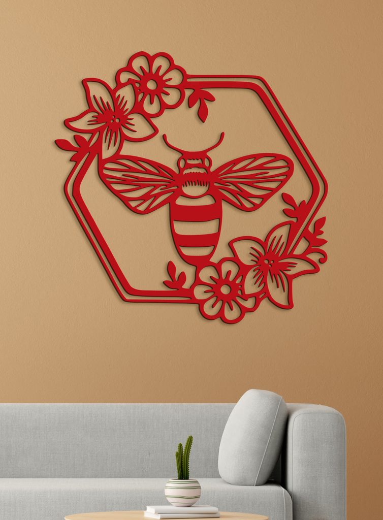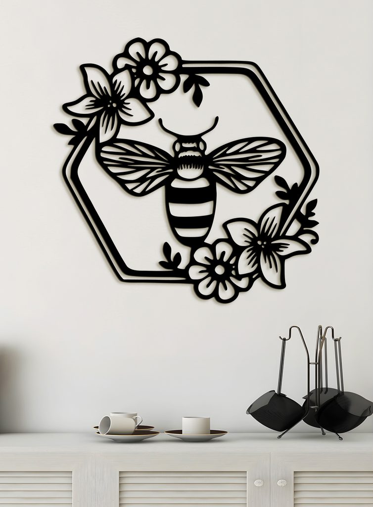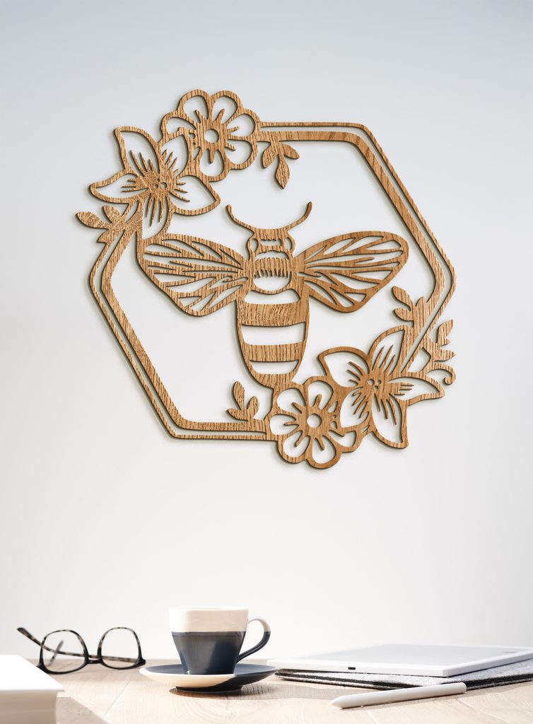 Představte si malou včelku, která klidně sedí uprostřed šestiúhelníku obklopeného květy a listy. Tento krásný obraz z HDF dřeva zachycuje tento něžný a přirozený okamžik. Detailní ilustrace včelky s jemnými křídly a výraznými pruhy na těle je zasazena do geometrického šestiúhelníkového rámu, který jí dodává moderní a vizuálně přitažlivý vzhled.