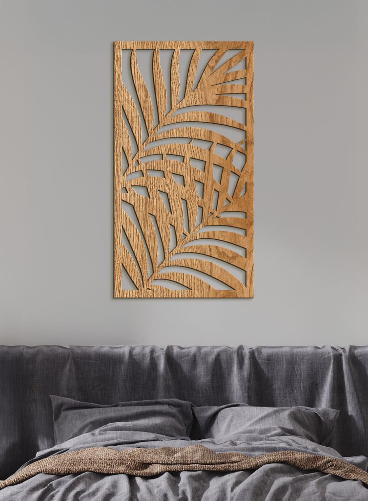 Naše dřevěné zátiší je dokonalým dekorativním prvkem pro váš domov ve stylu BOHO. Tvary listů na stěně vytvářejí 3D efekt, který působí velmi stylově a moderně. Nástěnné umění a moderní motivy jsou v současné době velmi oblíbené a tento obraz přesně takové nabízí. Dekorativní panel z kvalitního dřeva HDF zaručuje odolnost a dlouhou životnost.