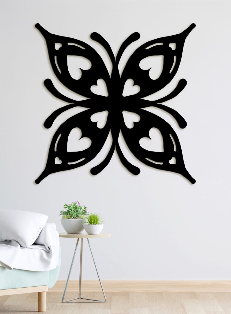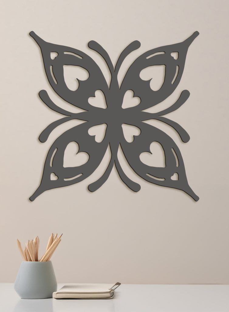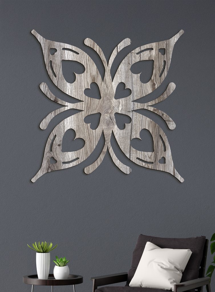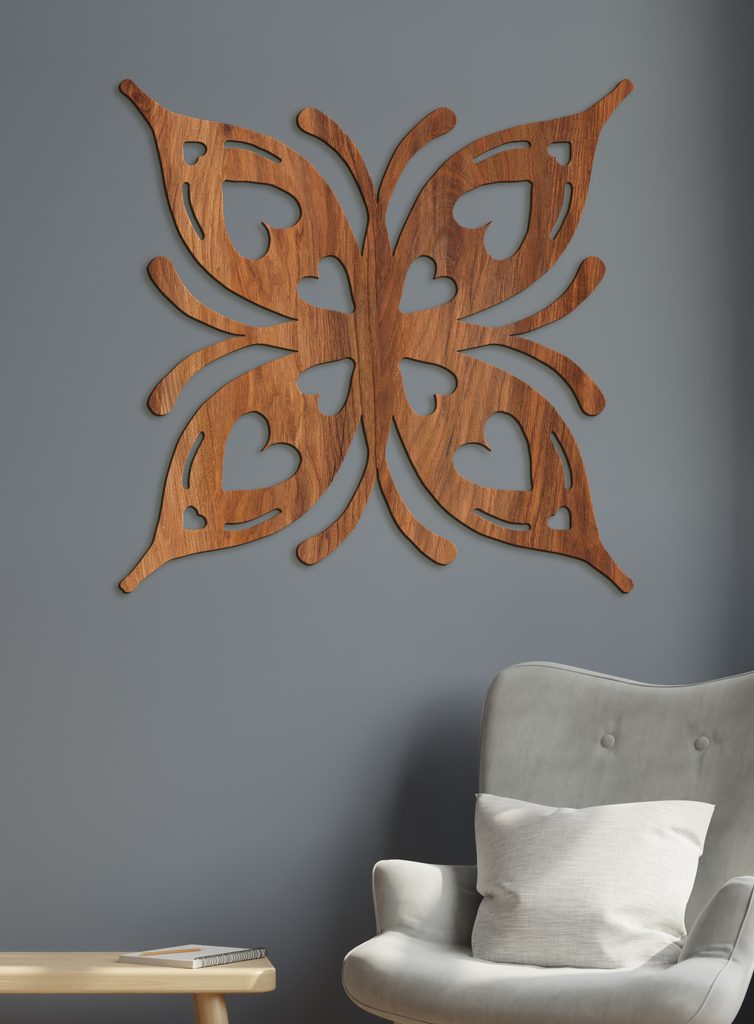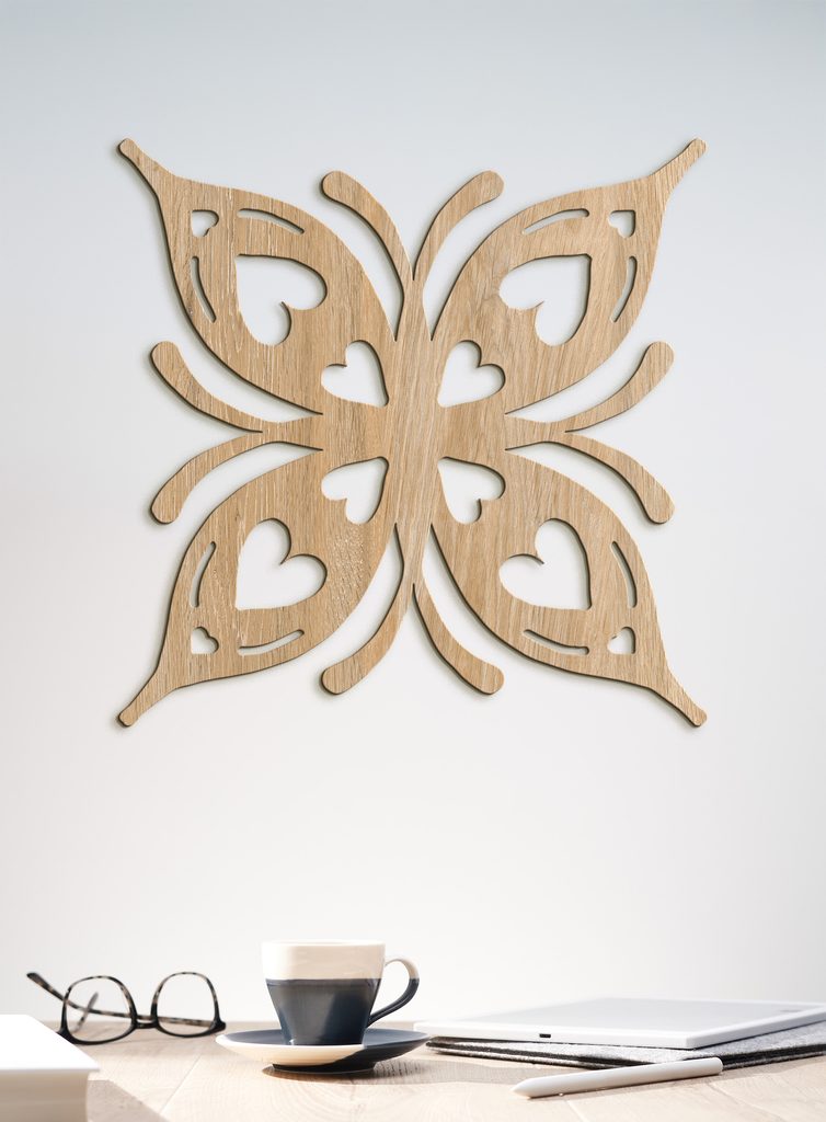 Romantický dřevěný obraz s motivem motýla zobrazuje moderní design. Každé křídlo obsahuje malá srdíčka a vytváří tak romantický vzor ideální pro každou domácnost.