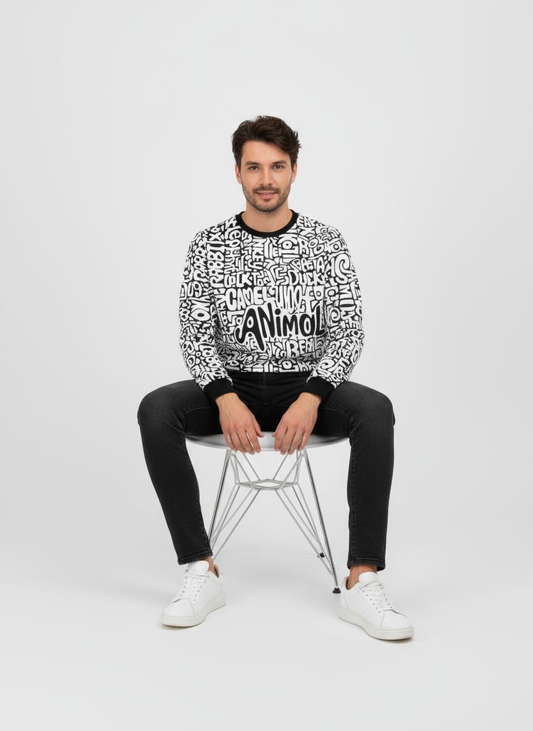 Pánská mikina s kapucí s barevným potiskem černo-bíla