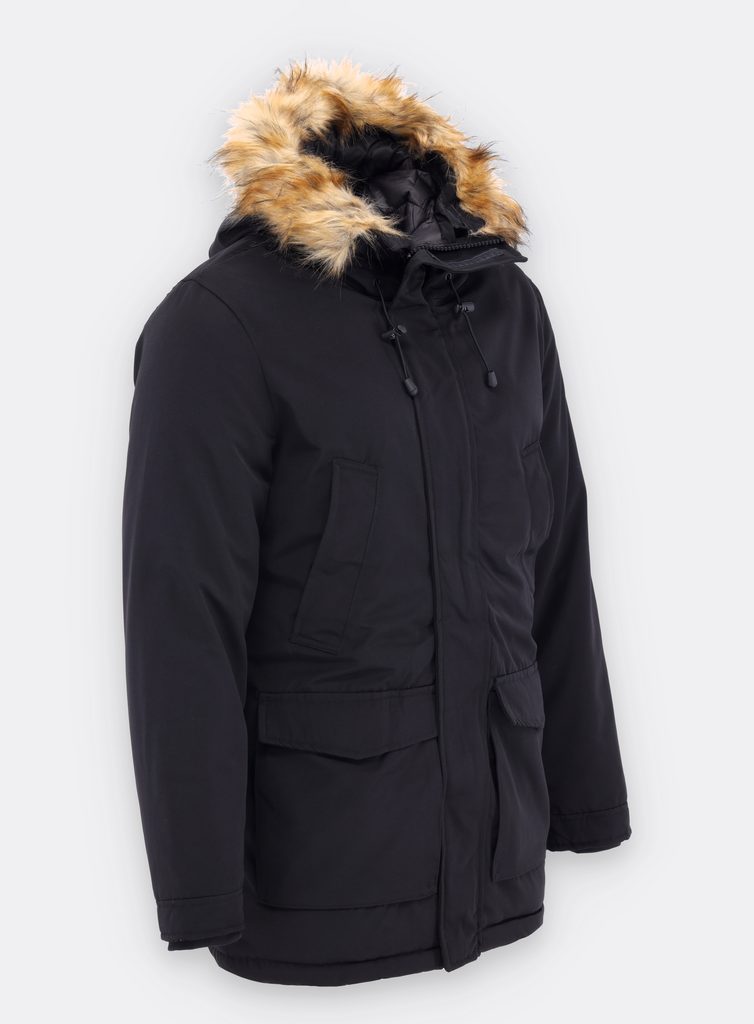 Pánská zimní bunda s kožešinou černá