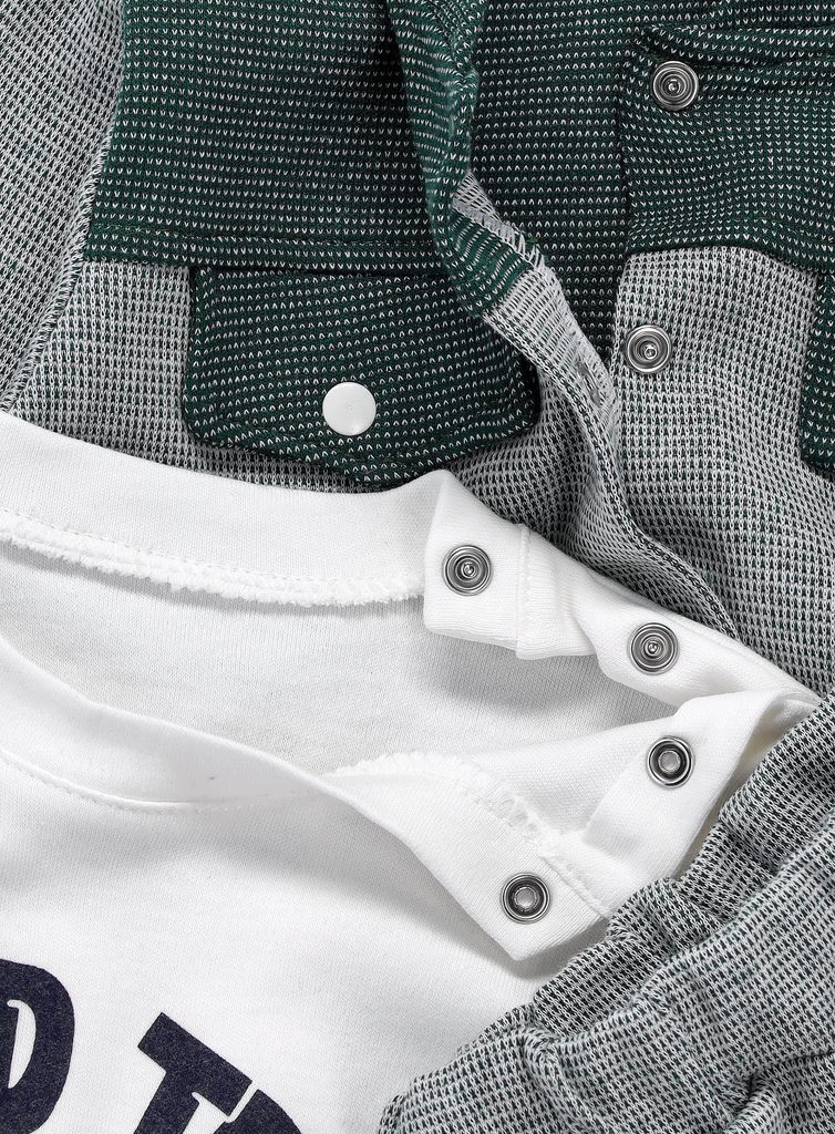 - tepláky: v pase do gumy, zakončené žebrovanými manžetami, bez kapes