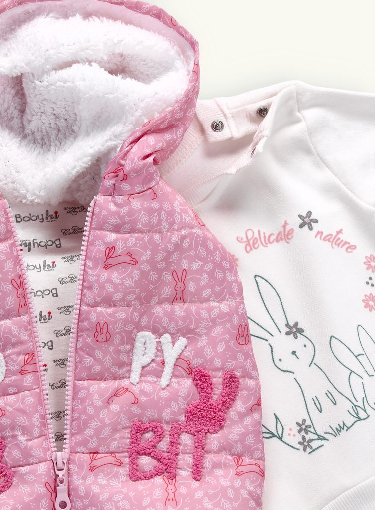 - vesta: neodepinatelná kapuce s plyšovou podšívkou, zapínání na zip