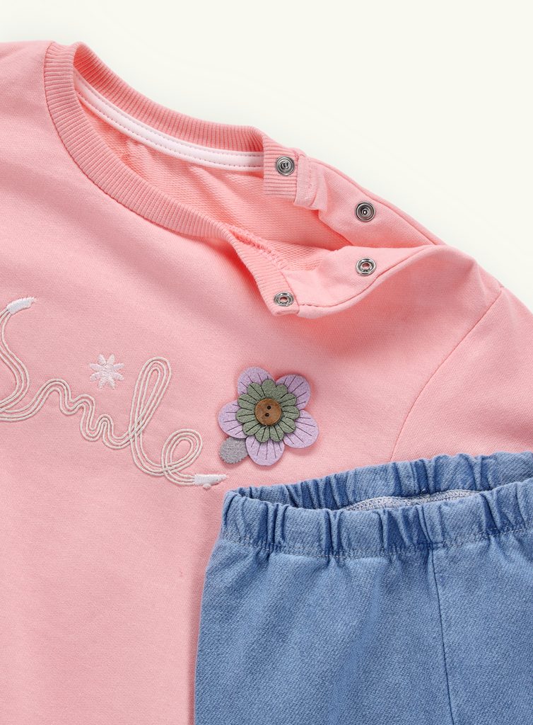 - mikina: rukávy ukončené žebrovanou manžetou, barevná nášivka vpředu