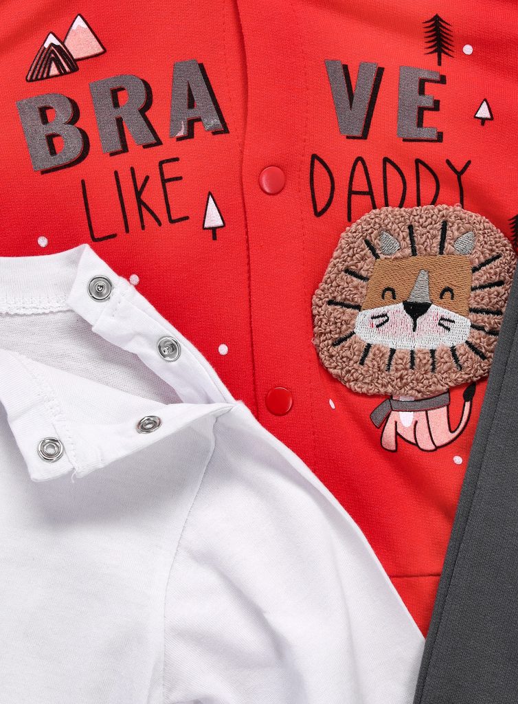 Kojenecká tepláková souprava STATEČNÝ LEV červeno-grafitová
