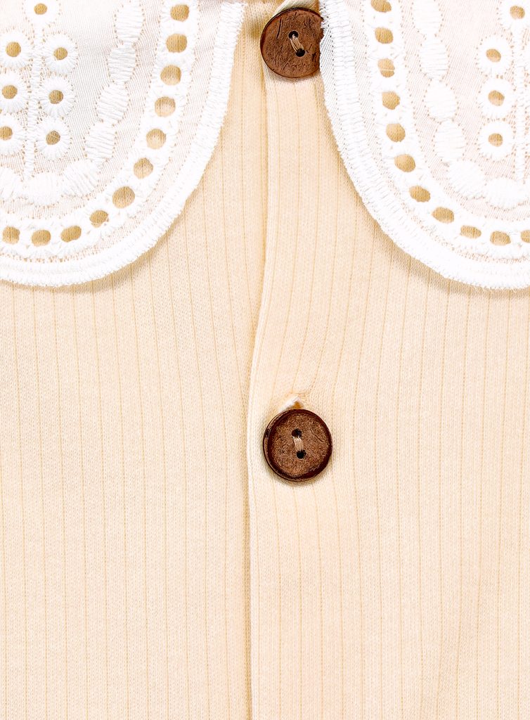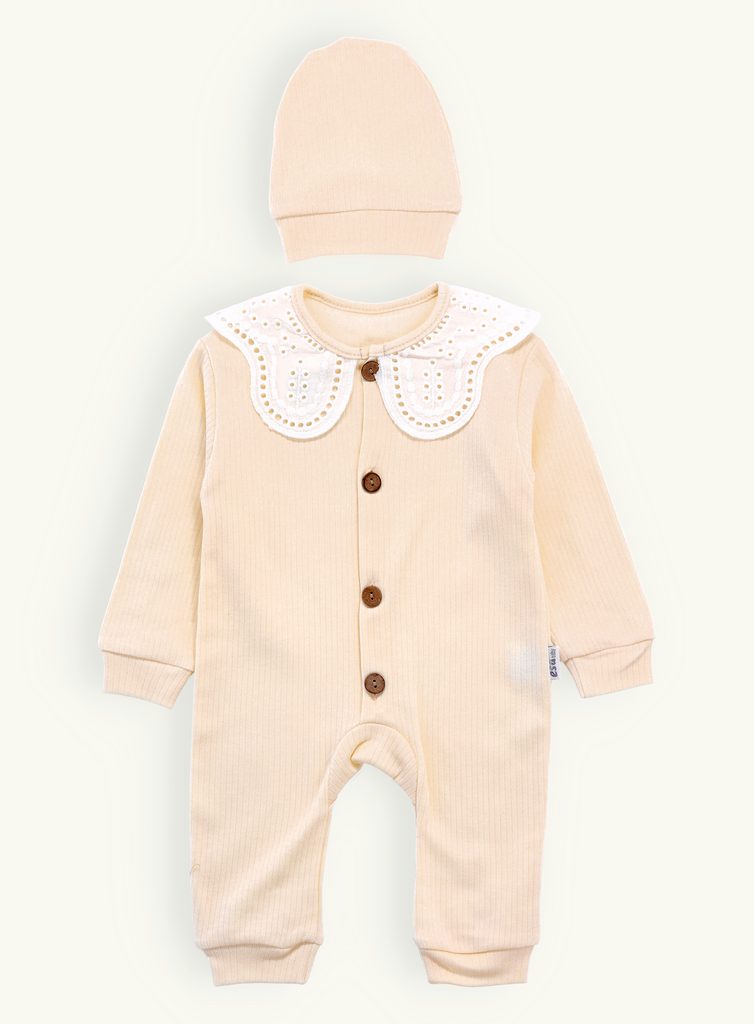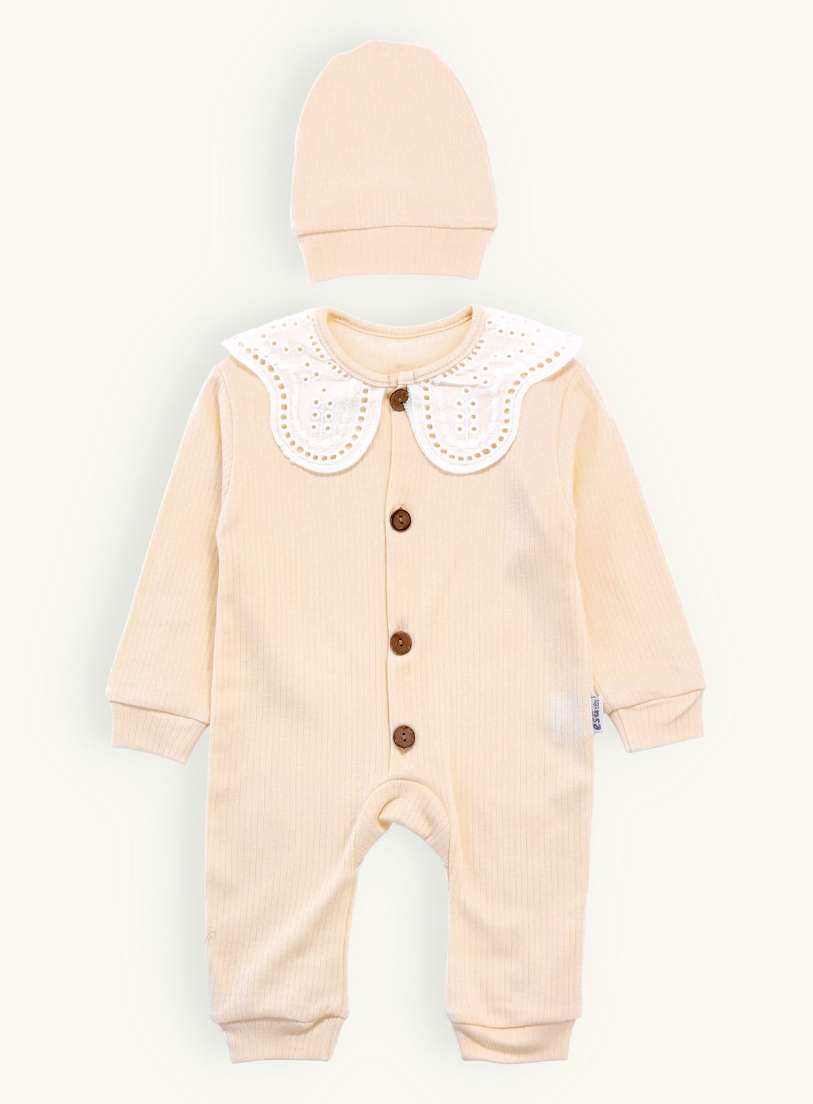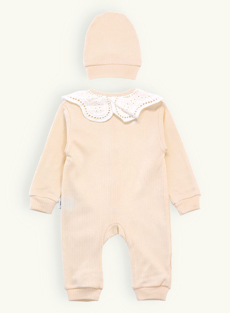 Novorozenecké body s krajkou a čepičkou smetanové barvy