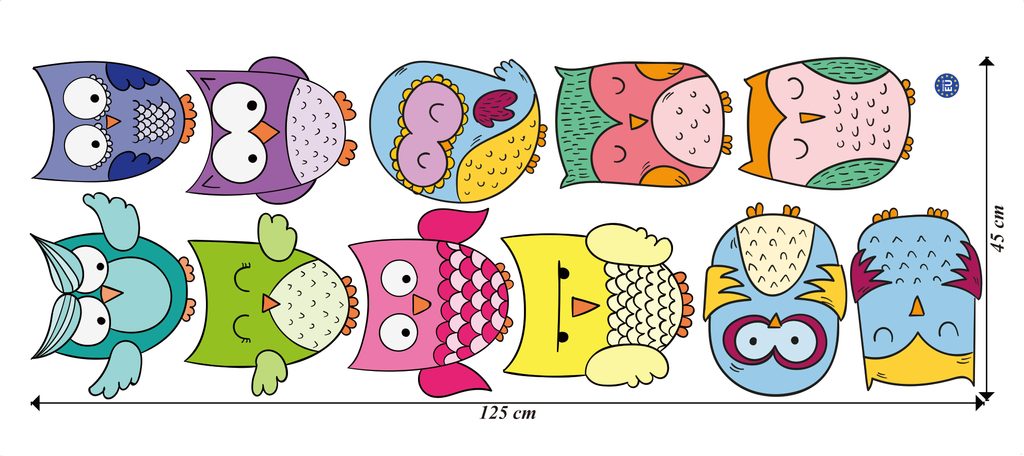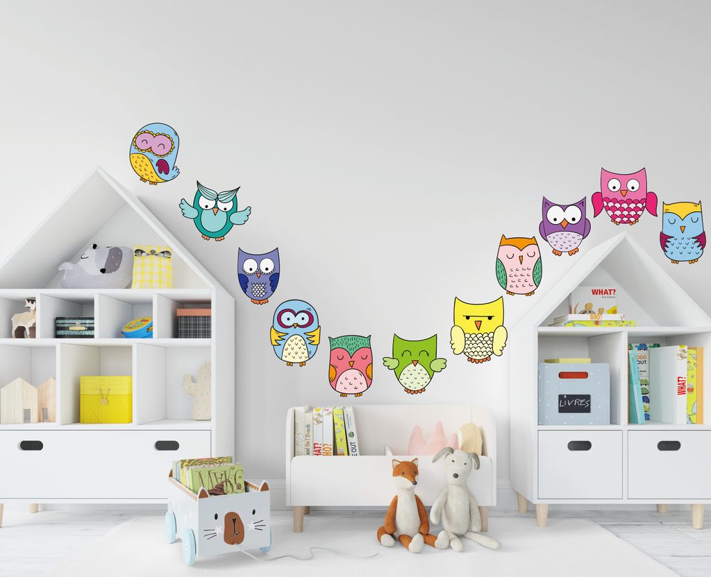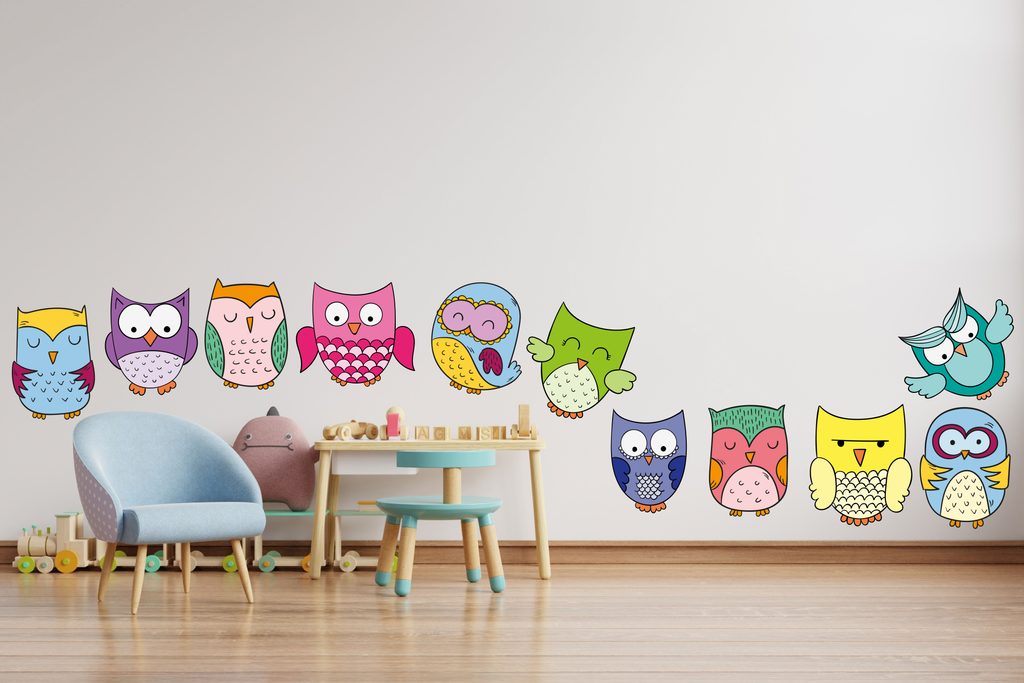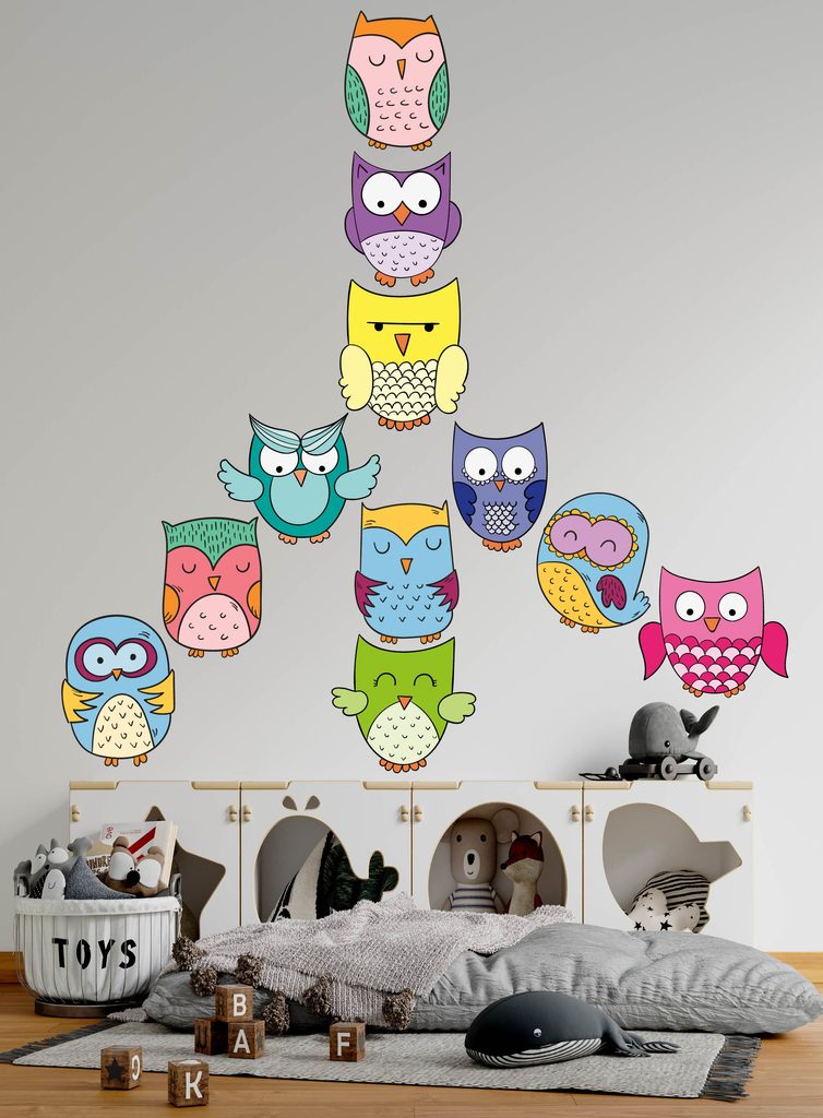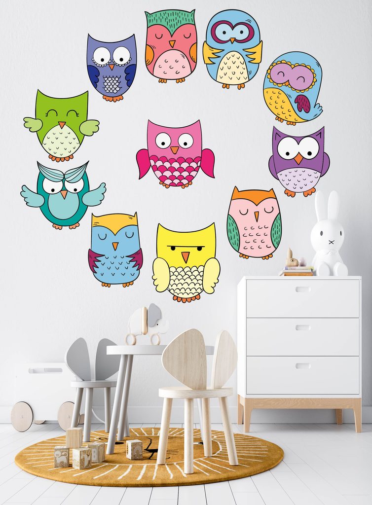 Naše samolepky na zeď s motivem veselých barevných soviček jsou dokonalým doplňkem každého dětského pokoje, který touží po originálním a zábavném vzhledu. Zářivé barvy, roztomilé obličeje a rozmanité tvary vytvoří jedinečnou atmosféru a podnítí dětskou fantazii.