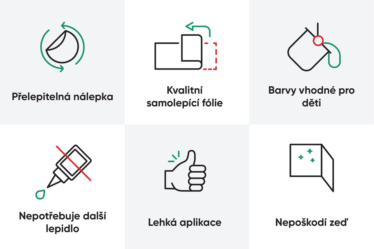 - snadno odstranitelné bez poškození stěny - nezanechávají na stěně lepidlo