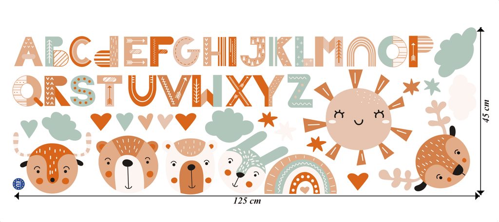 Samolepky na zeď Šťastná abeceda se zvířaty