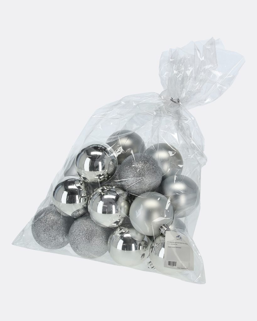Dodejte svému vánočnímu stromku nádech ledové elegance s touto sadou vánočních koulí v klasické stříbrné barvě. Toto praktické balení obsahuje směs koulí s různými povrchovými úpravami - lesklou, matnou a třpytivou - pro vytvoření dynamického a vkusného vzhledu vašeho stromku.